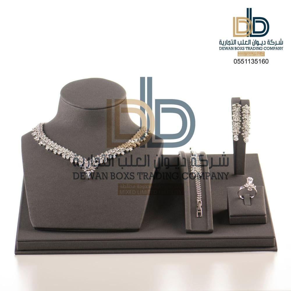 مع ستاند طقم رصاصي يمكنك عرض ما تملك من مجوهرات مع ضمان عدم تعرضها للسقوط بفضل المواد المتينة المستخدمة في تصنيعها والخامات الناعمة التي تحمي جميع القطع من الخدش أو التلف.